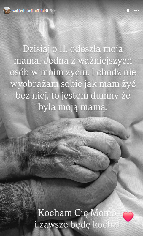 Jeszcze niedawno Wojtek informował w mediach społecznościowych o dramatycznej walce, jaką toczyła jego mama. Rodzina robiła wszystko, by zapewnić jej najlepszą opiekę i wsparcie. Niestety, mimo ogromnego zaangażowania bliskich i nadziei, kobieta przegrała walkę z chorobą. Wojtek nie krył wzruszenia, podkreślając, jak bardzo był dumny z tego, że to właśnie ona była jego mamą.