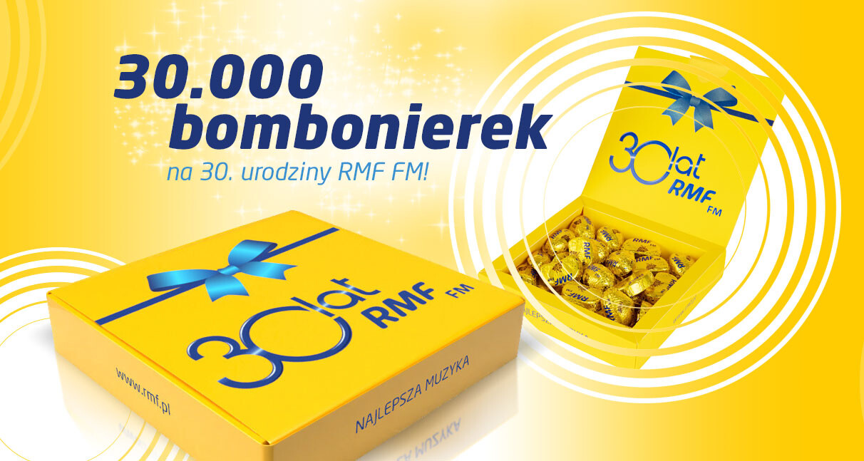Już oficjalnie RMF FM ma 30 lat! Dziękujemy, że nadal jesteście z nami. Aby wam podziękować i abyście mogli świetować razem z nami - rozdajemy w całej Polsce wyjątkowe bombonierki dla najwierniejszych słuchaczy RMF FM!