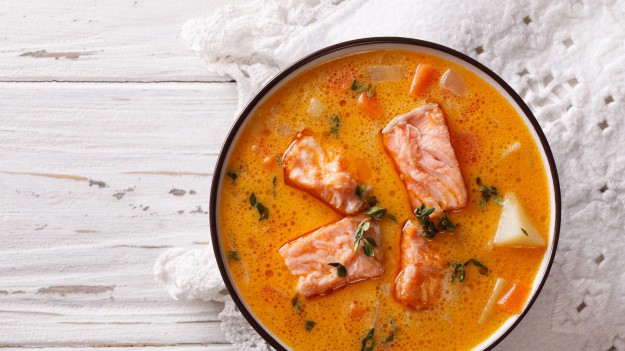 - Cebule i czosnek siekamy. Koper włoski i seler kroimy w kostkę wielkości 1 x 1 cm. Warzywa przesmażamy w garnku z rozgrzaną oliwa. Dodajemy ostrą i słodką paprykę, przecedzony wywar z ości, pomidory pelati. Gotujemy ok. 30 minut. Doprawiamy do smaku solą i pieprzem. Krewetki obieramy i oczyszczamy. Filety kroimy na mniejsze kawałki. Pod koniec gotowania dodajemy krewetki, małże i kawałki ryb. Gotujemy ok. 2-3 minut.