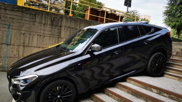 BMW utknęło na schodach. Kierowca chciał przetestować wytrzymałość swojego nowego samochodu [ZDJĘCIA]