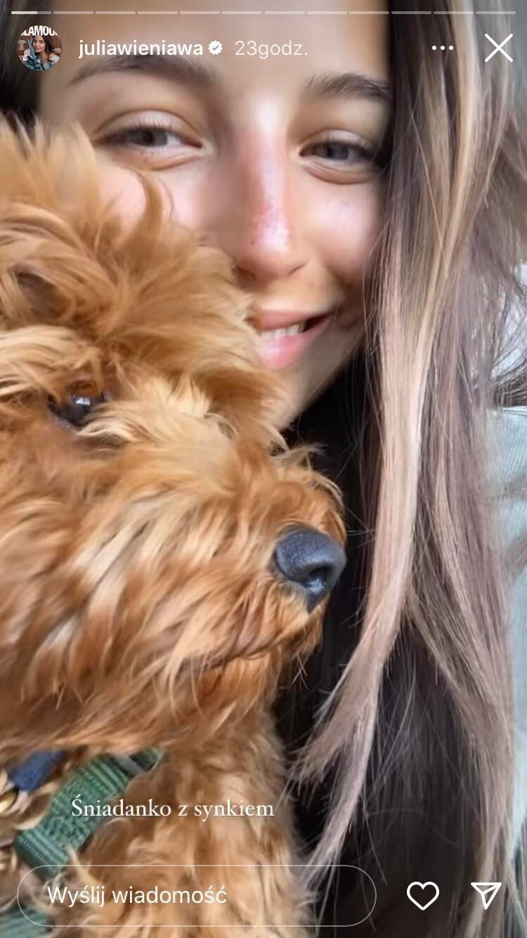 Po długim i rajskim wyjeździe na Bali Julia Wieniawa wróciła do Polski. Jak przyznaje, jet lag, a więc zespół nagłej zmiany strefy czasowej, nie daje jej o sobie zapomnieć. Rankiem wybrała się do lokalu na śniadanie. Zabrała ze sobą także radosnego czworonoga. Na krótkim nagraniu, opublikowanym w relacji na Instagramie, pokazała, jak spędzają razem wolne chwile. Psiak grzecznie siedzi na kolanach aktorki, a ona sama przyznaje w krótkim wpisie: