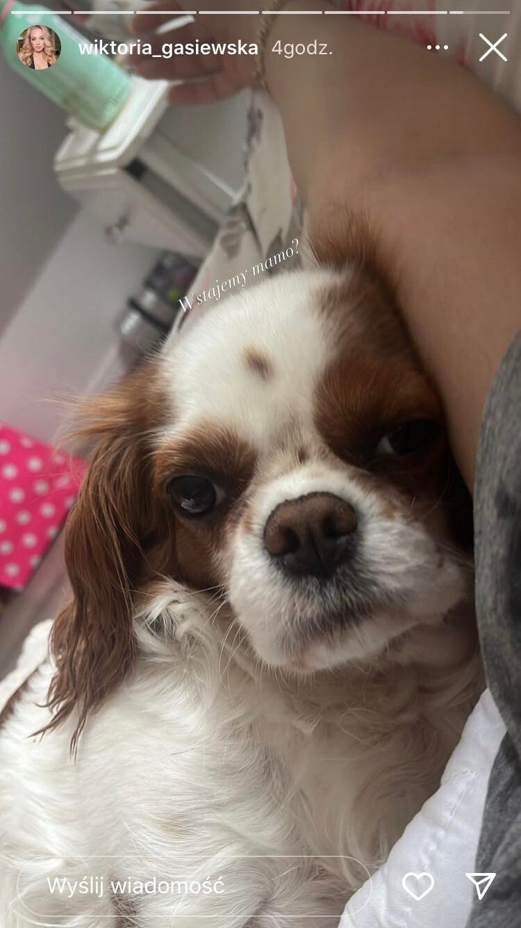 Tak było również i tym razem. Gąsiewska udostępniła na InstaStory urocze ujęcie prosto z pościeli. Zdjęcie poprzedziła krótkim wprowadzeniem na czarnym tle. „Otwieram oko i co widzę?” – czytamy. Na rozwiązanie tej zagadki fani nie musieli długo czekać. Po przesunięciu ich oczom ukazał się zaspany Cavalier King Charles Spaniel. Pupil wtula się w rękę aktorki i zabawnym spojrzeniem mierzy swoją towarzyszkę.