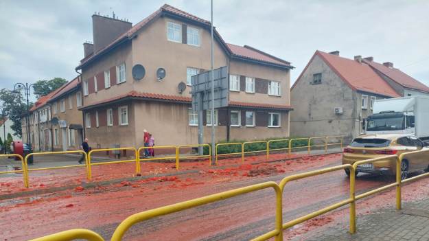 15 maja po godzinie 9 rano w Czaplinku (województwo zachodniopomorskie) miał miejsce dość spektakularny incydent. Na placu 3 Marca i na ulicy Wałeckiej jezdnia pokryła się czerwoną mazią. To efekt odpięcią się naczepy ciężarówki. Firma Orskov Food S.A. opublikowała oficjalne oświadczenie w tej sprawie. Tajemnicza maź to tak naprawdę bioodpady powstałe po produkcji truskawek i pomidorów. Służby na miejscu pracują nad usunięciem całego bałaganu, nie jest jednak tajemnicą, że posprzątanie wcale nie będzie łatwe. Kierowcy jadący trasą do Szczecinka powinni spodziewać się utrudnień – ruch wahadłowy będzie prowadzony przynajmniej do południa.