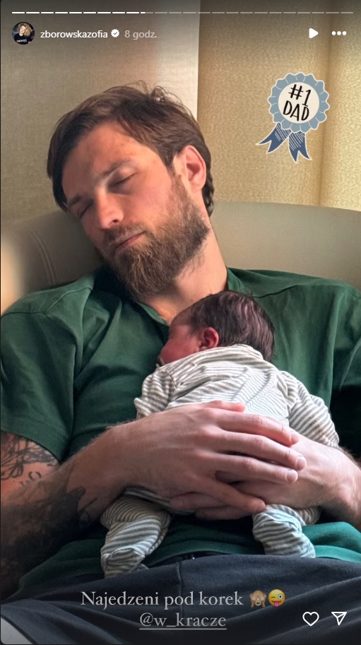 Dzisiaj na Stories Zofia Zborowska opublikowała kadr, na którym widać Andrzeja Wronę i Jaśminkę. Dziewczynka leży wtulona w siatkarza. Na rodzinnej fotografii pojawił się też medal symbolizujący „tatę numer 1”. Uroczą rodzinną fotografię aktorka opatrzyła opisem: