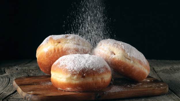 Wystudzone pączki posyp cukrem pudrem lub polej lukrem.