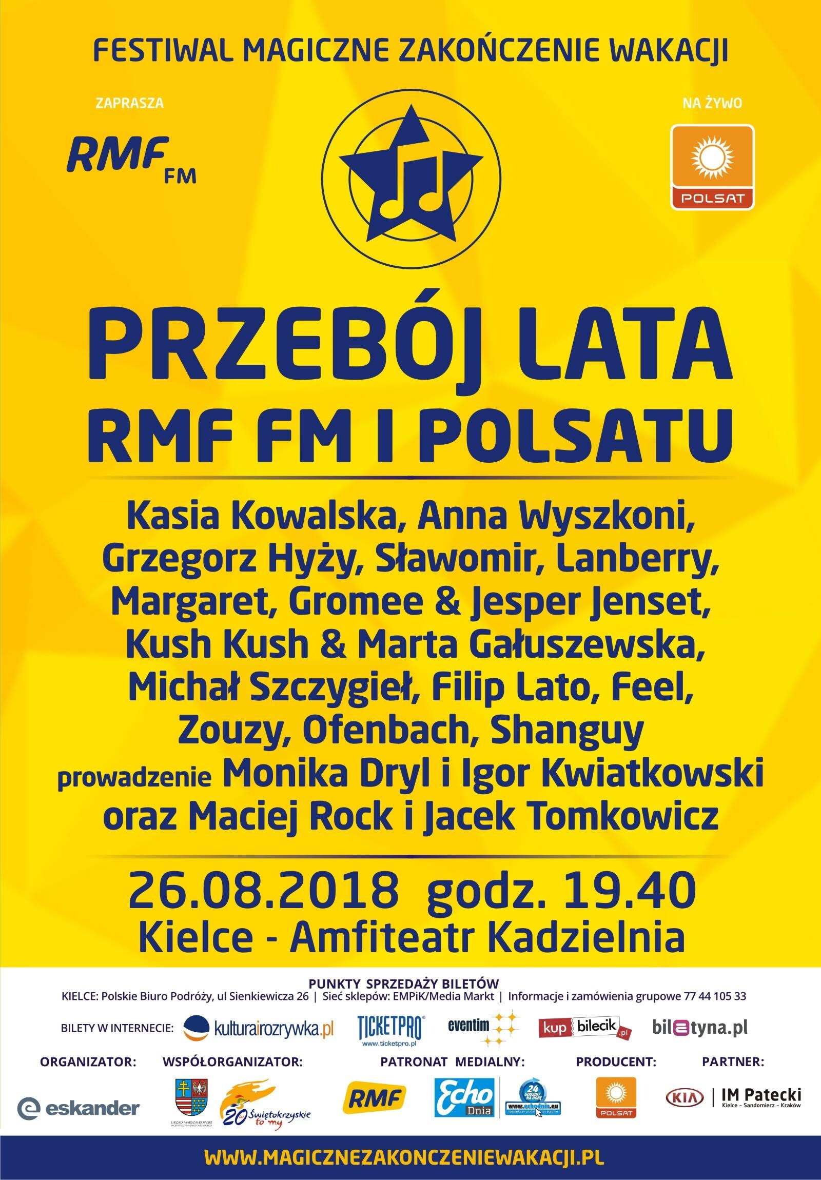 RMF FM wspólnie z telewizją Polsat zapraszamy na koncert Przebój Lata 2018! 26 sierpnia spotkajcie się z nami i największymi gwiazdami polskiej muzyki w kieleckim Amfiteatrze Kadzielnia. Startujemy już o 20.00.
