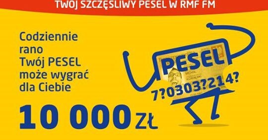 No i jeszcze jedno - wraca Twój Szczęśliwy PESEL! Codziennie od poniedziałku do piątku około godziny 8.15 rano, nasi prowadzący wyłonią jeden numer pesel - a ich właściciele, którzy się do nas zgłoszą, wygrają po 10.000 złotych!