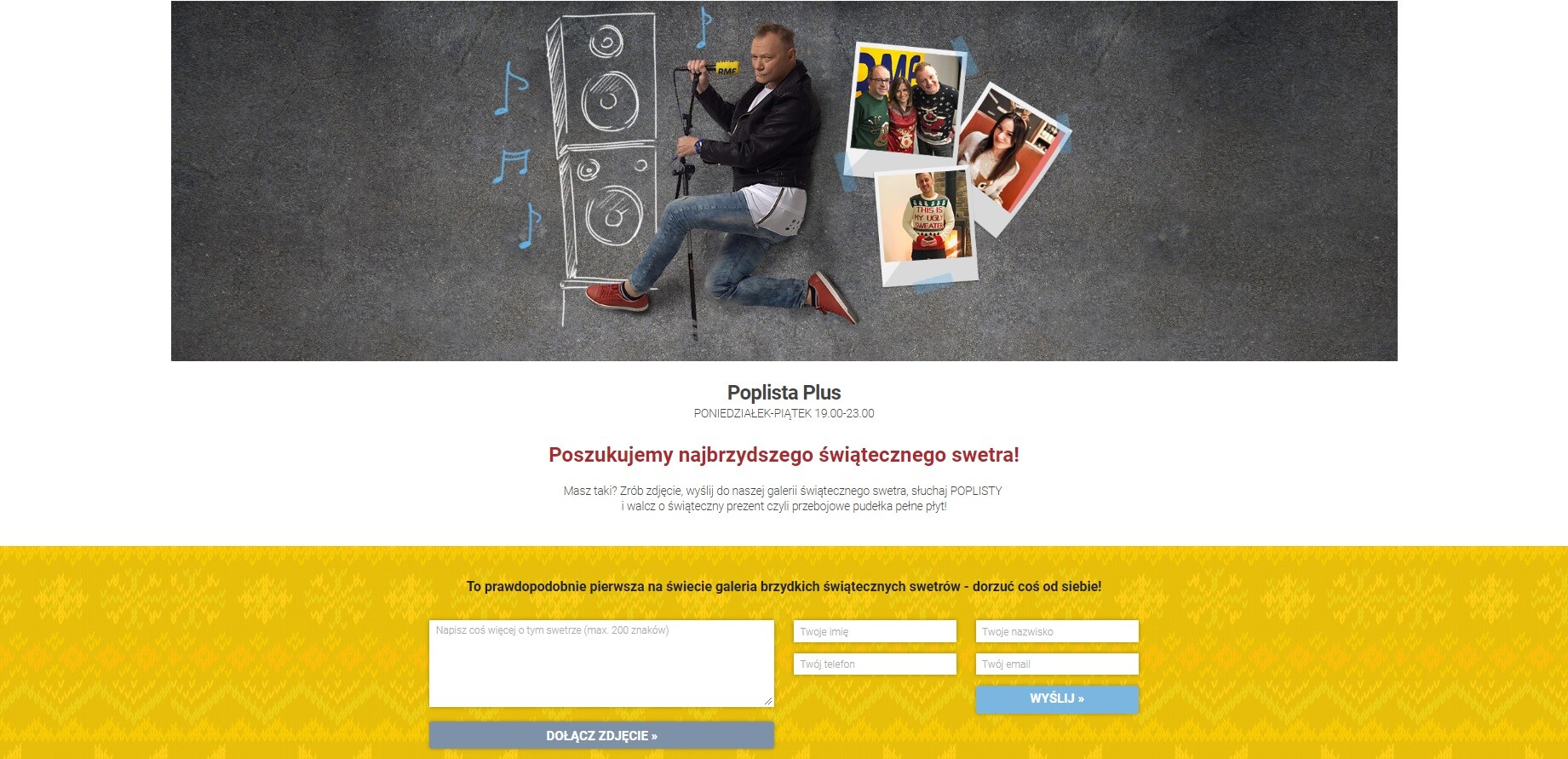RMF FM poszukuje najbrzydszego świątecznego swetra! Prosimy - bądźcie z nami szczerzy. Macie taki sweter? Jeżeli tak, koniecznie nam go pokażcie! Zróbcie zdjęcie, wyślijcie do naszej galerii świątecznego swetra [link tutaj], słuchajcie Poplisty i walczcie o świąteczny prezent - czyli przebojowe pudełka pełne płyt!