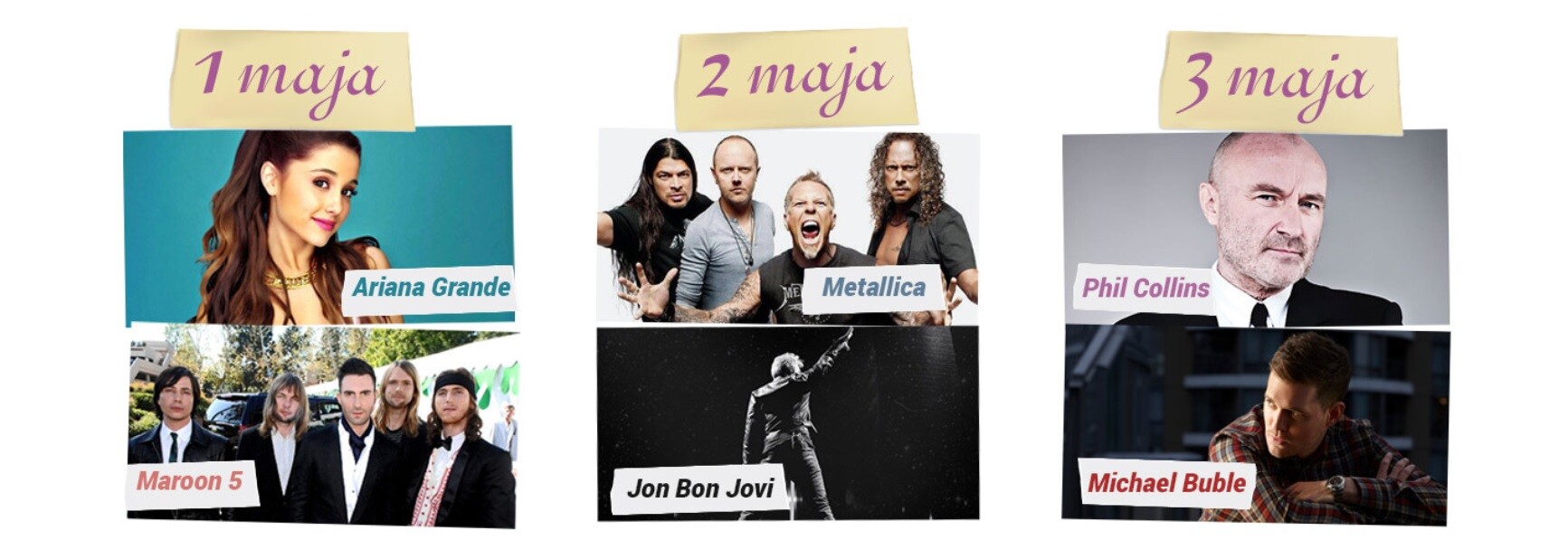 Jeśli lubisz się bawić przy dobrym popie, kochasz szalone wyzwania i marzysz o bilecie na koncert Ariany Grande (Kraków, 9 września) lub Maroon 5 (Kraków, 6 czerwca), to wpisz się na naszą listę gości i już w środę 1 maja od 20.00 tańcz i walcz o bilety na jedno z tych najgorętszych wydarzeń muzycznych roku! Biletami obrzuca was Mateusz Opyrchał!