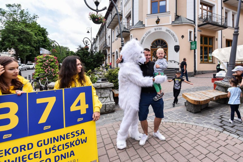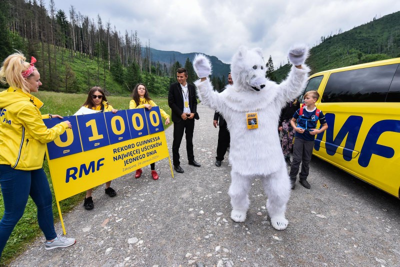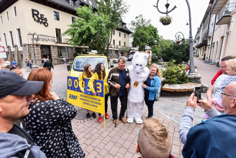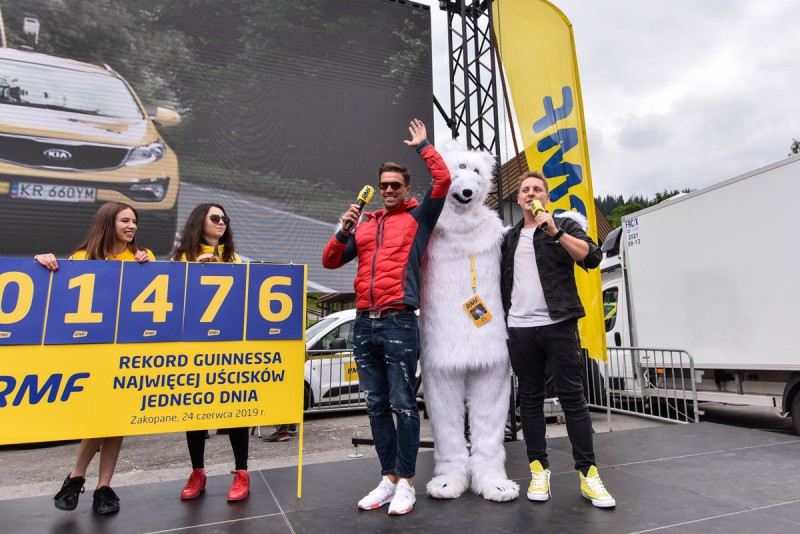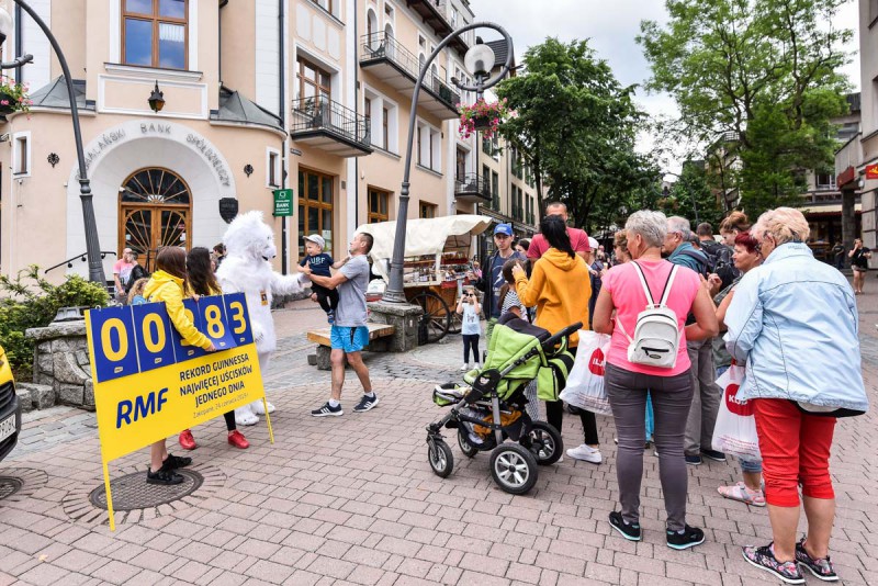 Słuchacze RMF FM, gwiazdy i Biały Miś przejęli Zakopane! Od samego rana zwiedzaliśmy Zakopane. Byliśmy między innymi na Kasprowym Wierchu, Wielkiej Krokwi, Gubałówce i na Krupówkach. Razem z Margaret, Eweliną Lisowską, Antkiem Smykiewiczem, Staszkiem Karpiel-Bułeckim iustanowiliśmy nowy rekord Guinnessa - w przytulaniu się do Białego Misia!