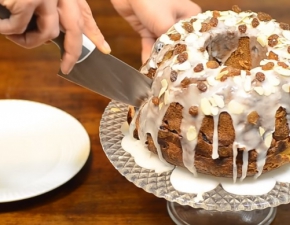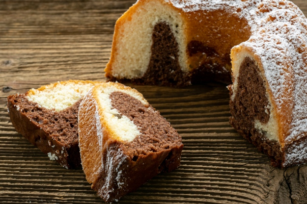 12. Jeszcze ciepłą, ale nie gorącą babkę marmurkową, wyjmujemy z formy. Teraz pozostawiamy ciasto do całkowitego wystygnięcia.