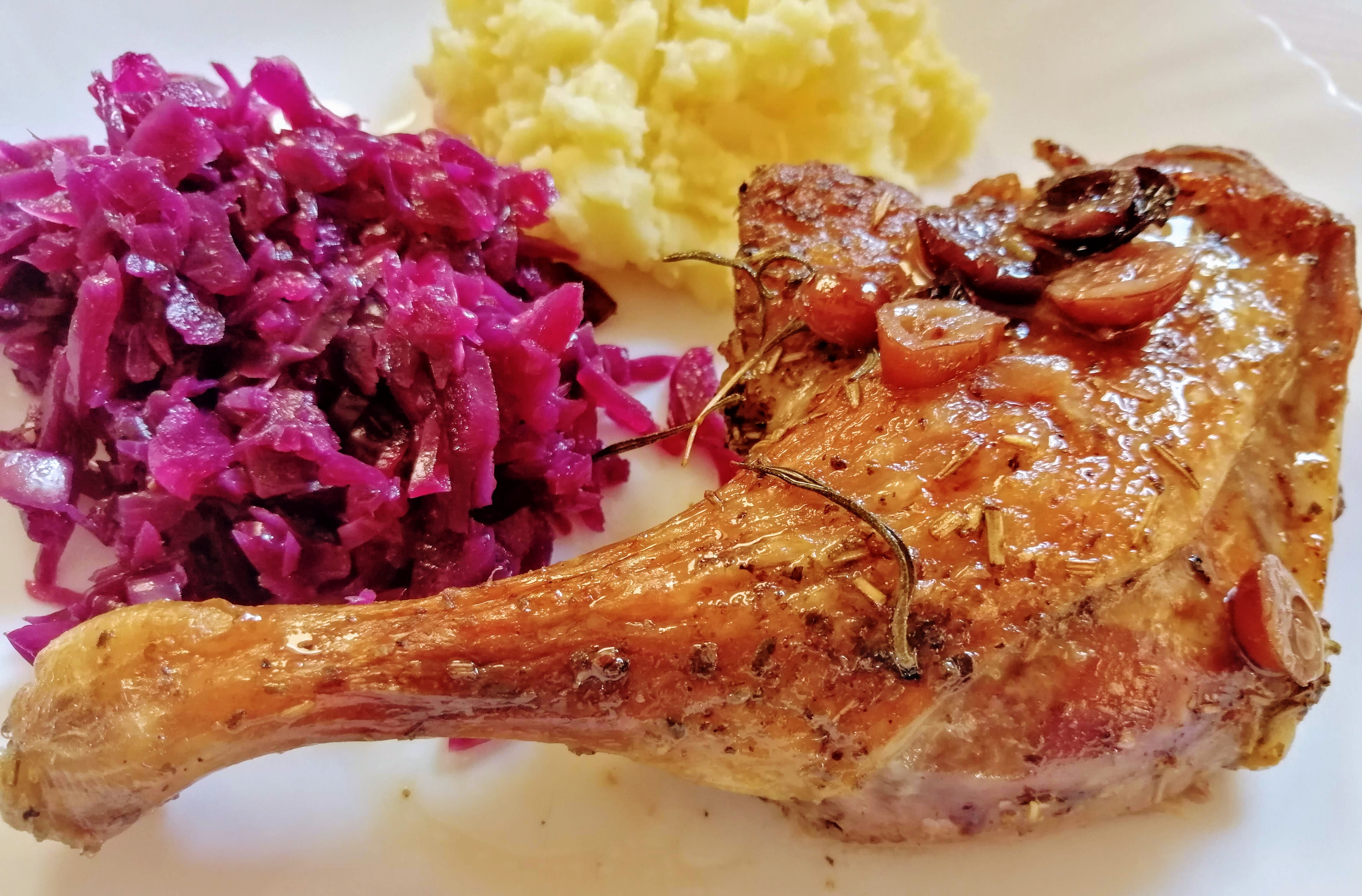 Pieczone udka z kaczki z żurawiną i rozmarynem