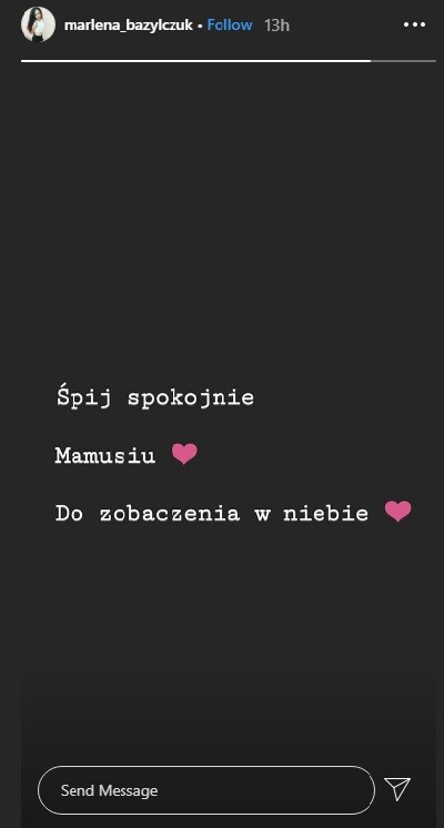 Śpij spokojnie Mamusiu. Do zobaczenia w niebie – napisała na swojej instagramowej relacji.