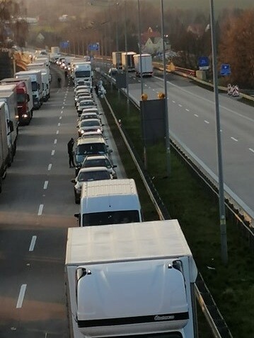 Witam. Na przejściu granicznym z Czech (Kudowa Słone) pokonanie 10 km drogi do granicy zajęło mi 27 godz. korek obecnie liczy 45. Kierowcy utknęli tam na kilka dni – słuchacz Adrian
