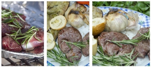 2. Wyciskamy ząbek czosnku, mieszamy z rozmarynem i oliwą; w tak przygotowaną mieszaninę zanurzamy stek - tak, aby rozmaryn i czosnek zostało na mięsie.