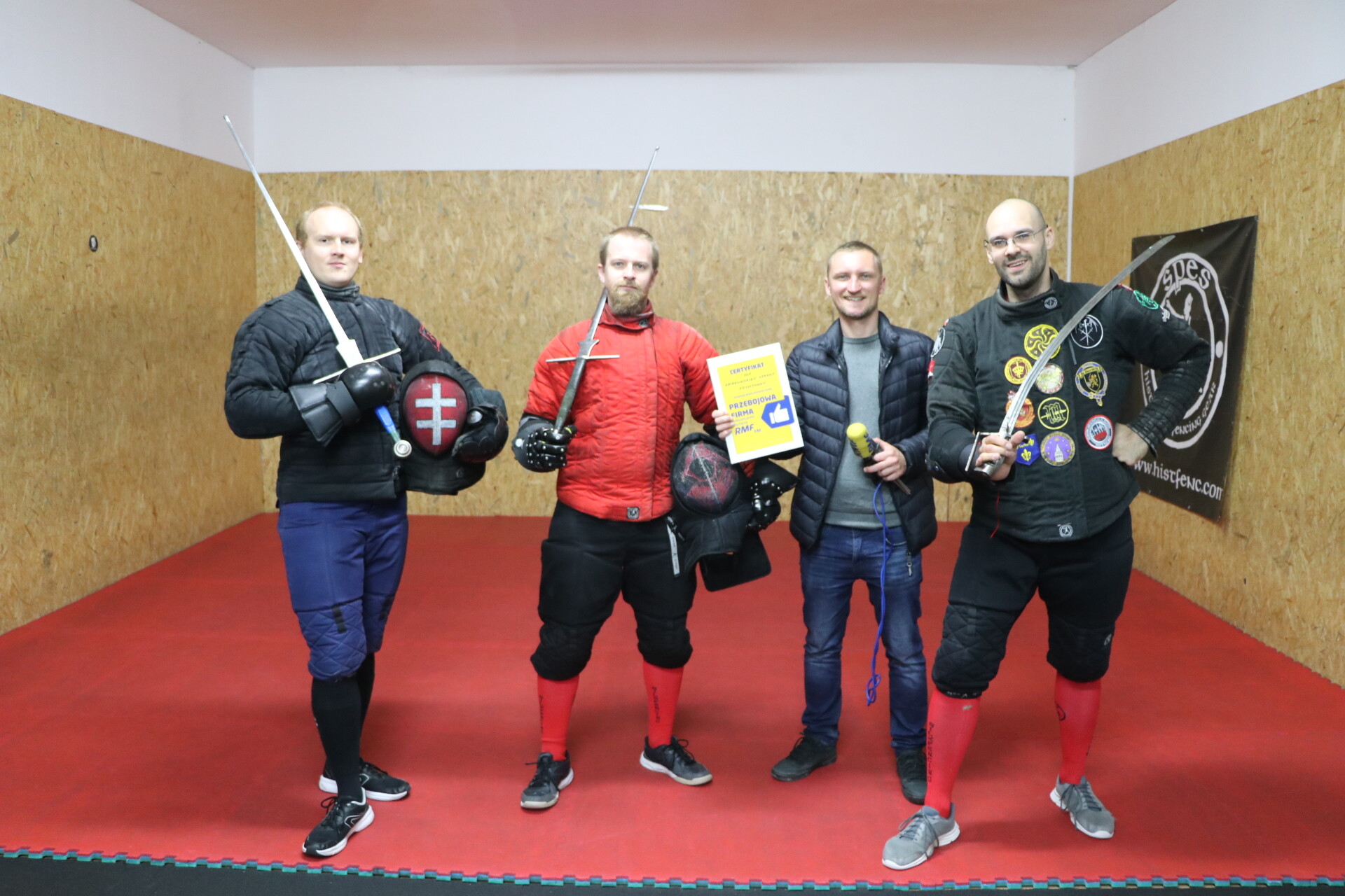 To bardzo miło, że słuchacze polecają naszą skromną szkołę. Zajmujemy się głównie szermierką historyczną (...) różną bronią: miecz długi, szabla, sztylet czy miecz z tarcza. Generalnie wszystkie bronie, które istniały w średniowieczu i nowożytności. (...) Stworzyliśmy to miejsce - jedyne w Krakowie, jedyne w Małopolsce. (...) Bardzo dziękujemy za ten certyfikat - wyznał właściciel, Jakub Zabierowski.
