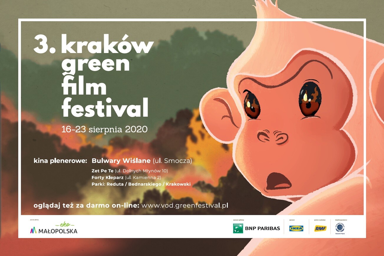 3. Kraków Green Film Festival odbędzie się w dniach 16-23 sierpnia 2020 roku w sześciu plenerowych kinach na terenie Krakowa. Do konkursu głównego zakwalifikowano 53 produkcji, a do tego zaprezentowane będzie jeszcze blisko 20 filmów w formie pokazów specjalnych. Większość filmów będzie miało w Krakowie polską premierę, a dla części z nich będzie to zarazem światowa premiera. W konkursie znajdą się też filmy, które w ciągu ostatniego roku zdobyły nagrody na największych światowych festiwalach, jak np. „Kraina Miodu” – laureat 1. nagrody na festiwalu Sundance i zdobywca nominacji do Oscara. Pokazujemy też inne wybitne produkcje jak chociażby szeroko komentowane „Antropocen. Epoka Człowieka”, „Zatoka Cieni” czy Prawdziwe Oblicze Transportu Zwierząt.