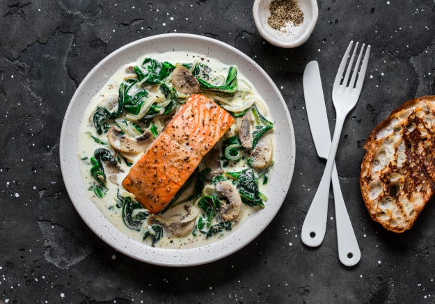 Przygotowanie łososia z kurkami w sosie śmietankowym