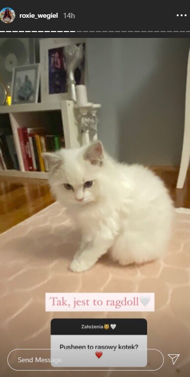 Niedawno na InstaStory młodej gwiazdy trafiło wyjątkowe zdjęcie. Artysta pokazała w sieci swojego nowego kota rasy ragdoll! Białego czworonoga wokalistka nazwała Pusheen.