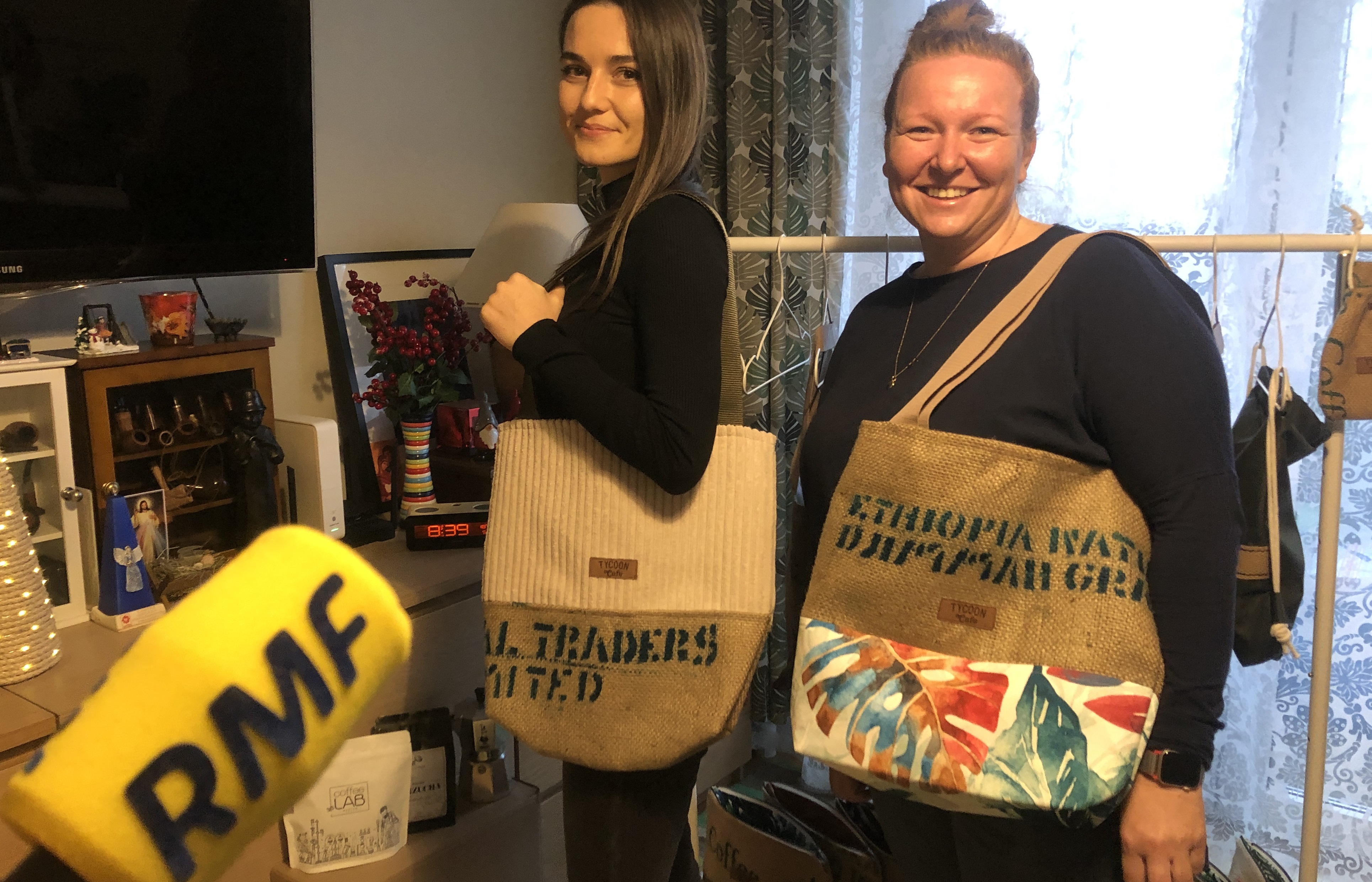 Dzisiaj nasz reporter Michał Dobrołowicz odwiedził prowadzących sklep internetowy Tycoon Cafe, którzy sprzedają torby i etui tworzone z worków po ziarnach kawy. Rozmawiał z założycielami - braćmi Michałem i Jakubem - oraz z ich partnerkami - Katarzyną i Magdaleną. Wszyscy zgodnie przyznają, że ich produkty są oryginalne i wyjątkowe.