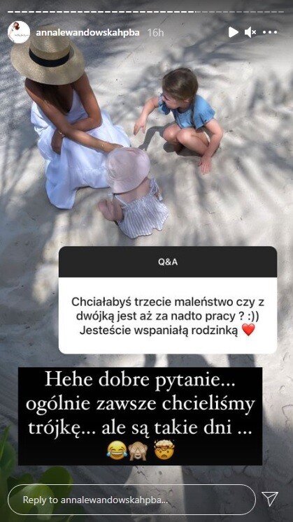 Podczas internetowej sesji pytań i odpowiedzi nie zabrakło również odniesienia do potomstwa Lewandowskich, a konkretnie: do planów powiększenia rodziny.