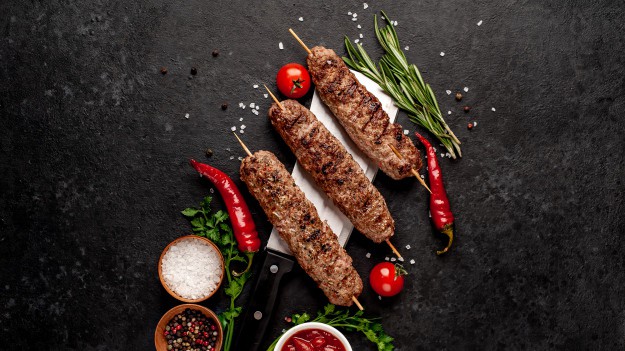 Składniki na kebab na pałeczkach cynamonowych z sałatką według Roberta Makłowicza