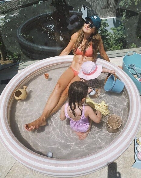 Błoga chwila, kiedy bawią się w basenie. Drodzy Rodzice, raczej nie narzekamy na brak aktywności fizycznej, prawda? Bieganie od rana do wieczora za dziećmi to też trening – przyznała w opisie.