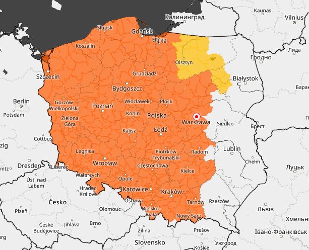 fot. IMGW/Mapa ostrzeżeń meteorologicznych