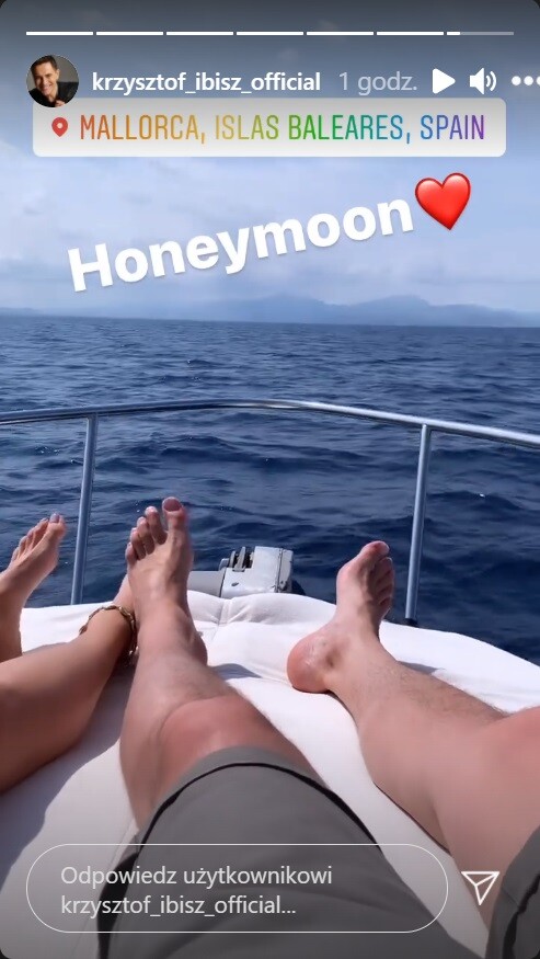 Ibiszowie zdążyli już pochwalić się w sieci pierwszymi relacjami ze swojego miesiąca miodowego. Krzysztof udostępnił za pośrednictwem InstaStories kilka krótkich filmów i wakacyjnych fotografii, zaś Joanna opublikowała na swoim instagramowym profilu zdjęcia z jachtu. 29-letnia modelka zapozowała w bikini, prezentując przy tym zgrabną sylwetkę.