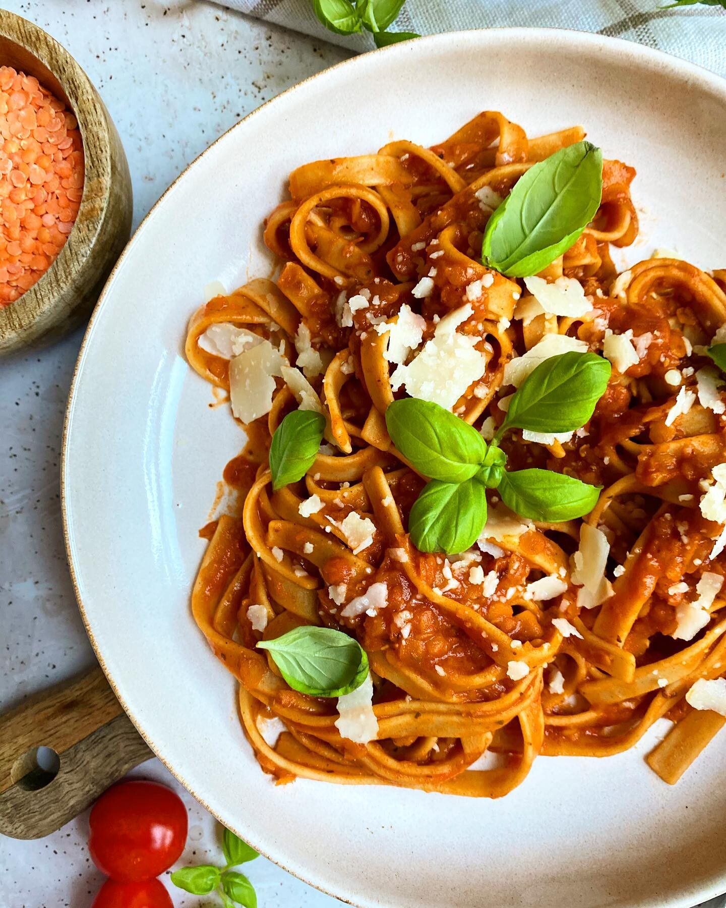 Składniki na wegetariańskie spaghetti bolognese