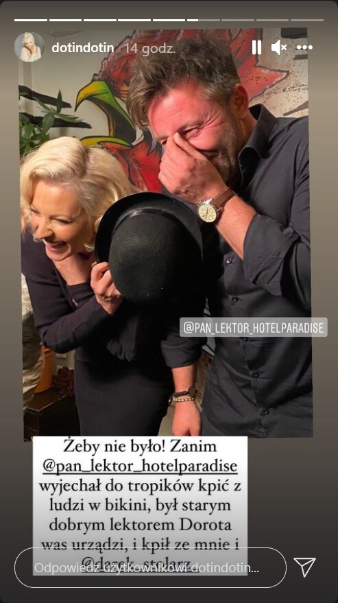 Żeby nie było! Zanim Pan Lektor z „Hotelu Paradise” wyjechał do tropików kpić z ludzi w bikini, był starym, dobrym lektorem „Dorota was urządzi” i kpił ze mnie – zdradziła autorka programów TVN.