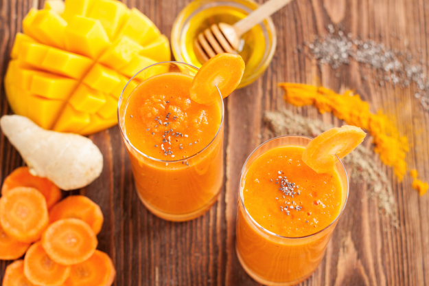 Smak koktajlu podkreśli i wzbogaci kurkuma, którą uznaje się za jedną z najzdrowszych przypraw. Znajdująca się w niej kurkumina wykazuje właściwości przeciwzapalne i antybakteryjne, naukowcy podejrzewają też, że może spowalniać namnażanie się wirusów w organizmie.