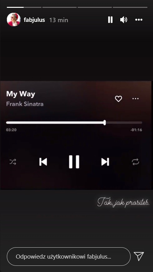 Julia Oleś za pośrednictwem Instagrama pożegnała Kamila Durczoka. Blogerka i dziennikarka opublikowała na relacji wymowne nagranie – fragment utworu „My Way” Franka Sinatry. Pod spodem napisała krótko: