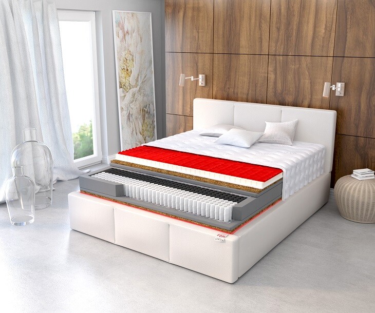 Rdzeniem w materacach wyższej klasy – jak w linii Comfort+ czy Luxury Home z Fabryki Dobrych Materacy – może być także blok lateksu. Cechują go takie właściwości jak doskonałe dopasowanie do kształtu ciała oraz właściwości antyalergiczne. Dzięki swojej sprężystości oraz kanalikom umieszczonym wewnątrz przy rozprężaniu wydmuchuje wszystko, co znajduje się w środku. Jest przez to polecany osobom uskarżającym się na alergie na roztocza kurzu domowego i nie tylko. Jest też bardziej wytrzymały i odporny na uszkodzenia czy odkształcenia. I znów – lateks jako materiał jest zdecydowanie droższy niż zwykła pianka poliuretanowa czy nawet sprężyny kieszeniowe.
