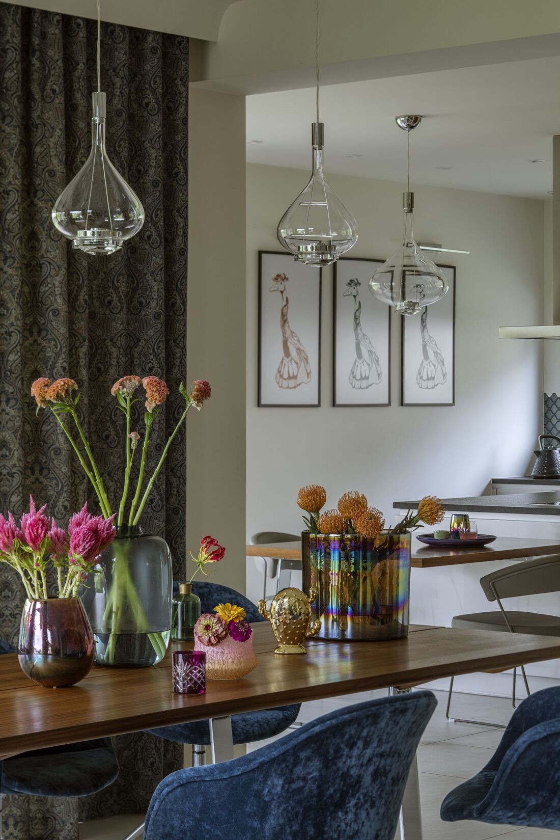 W przypadku Boho chodzi również o autentyczność materiałów — tutaj warto postawić na prawdziwe materiały wraz z ich całym realizmem i wartością. We wnętrzach boho dobrze umieścić tkaniny takie jak makramy czy kilim, ale również niewielkie rzeźby, drewniane dodatki czy kolorowe poduszki.