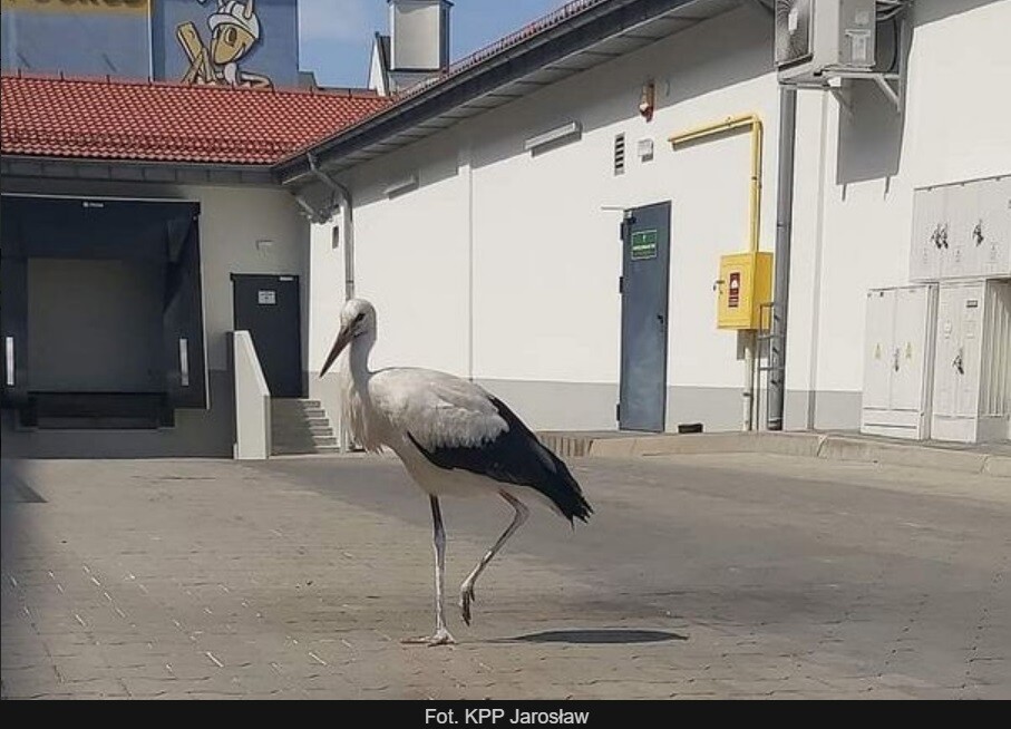 Policjanci z Jarosławia zostali wezwani do nietypowego zadania. Kobieta zadzwoniła z przysklepowego parkingu. Właśnie tam jej uwagę zwrócił błąkający się bocian, który chodził między samochodami. Zachowanie zwierzęcia zaniepokoiło zgłaszającą, która postanowiła wezwać pomoc.