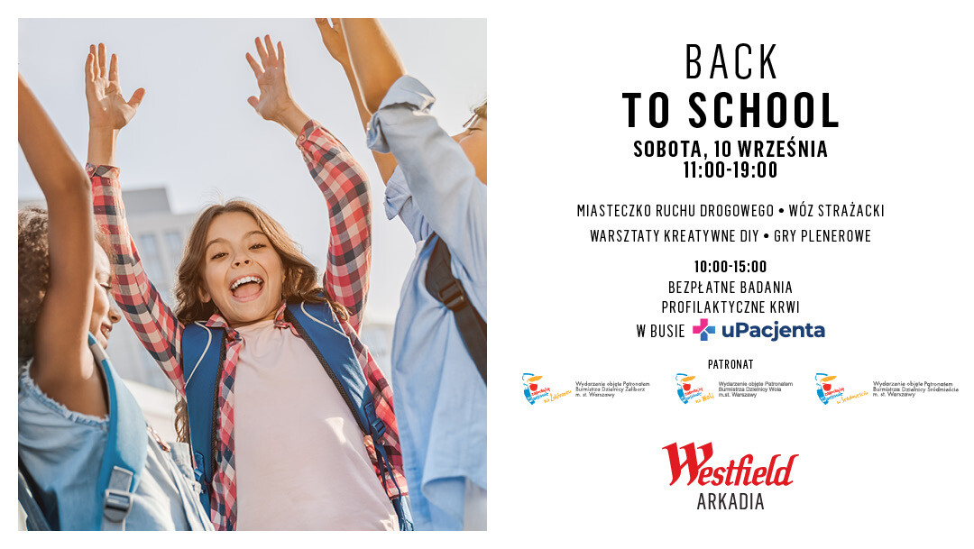 Kolejne atrakcje zostały zaplanowane na sobotę, 10 września. Na terenach zielonych przed Westfield Arkadia stanie Miasteczko Ruchu Drogowego przygotowane przez policjantów z Wydziału Ruchu Drogowego. Dzieci będą mogły w nim zdać zarówno teoretyczny, jak i praktyczny egzamin na kartę rowerową. Przed centrum handlowym pojawi się również wóz strażacki, w którym dzieci będą mogły spotkać się ze strażakami oraz obejrzeć sprzęt, w który jest on wyposażony. Tego dnia odbędą się także warsztaty pod okiem animatorki-plastyczki, podczas których najmłodsi samodzielnie wykonają przybory szkolne, takie jak np. okładki na książki, stemple z imionami czy plany lekcji. Będzie to również okazja do zabawy i ćwiczeń w strefie gier plenerowych. Na dzieciaki będą czekały m.in. deska równoważnia, tor przeszkód, limbo, krykiet oraz jenga i domino XL.
