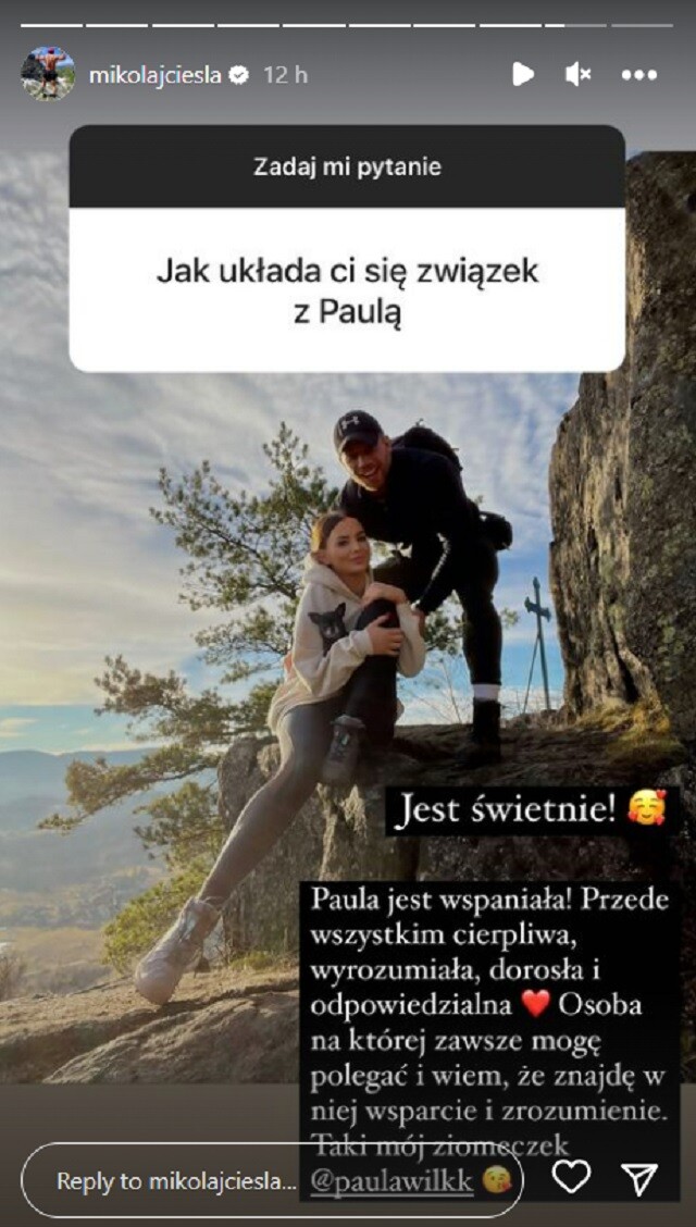 Mikołaj Cieśla z „Love Island” w podobnym czasie zorganizował także szybką rundę „pytań i odpowiedzi”, zaspokajając ciekawość internautów. Jeden z pozostawionych przez nich wpisów dotyczyło relacji uczestników show, a Mikołaj odpowiedział na niego następująco: