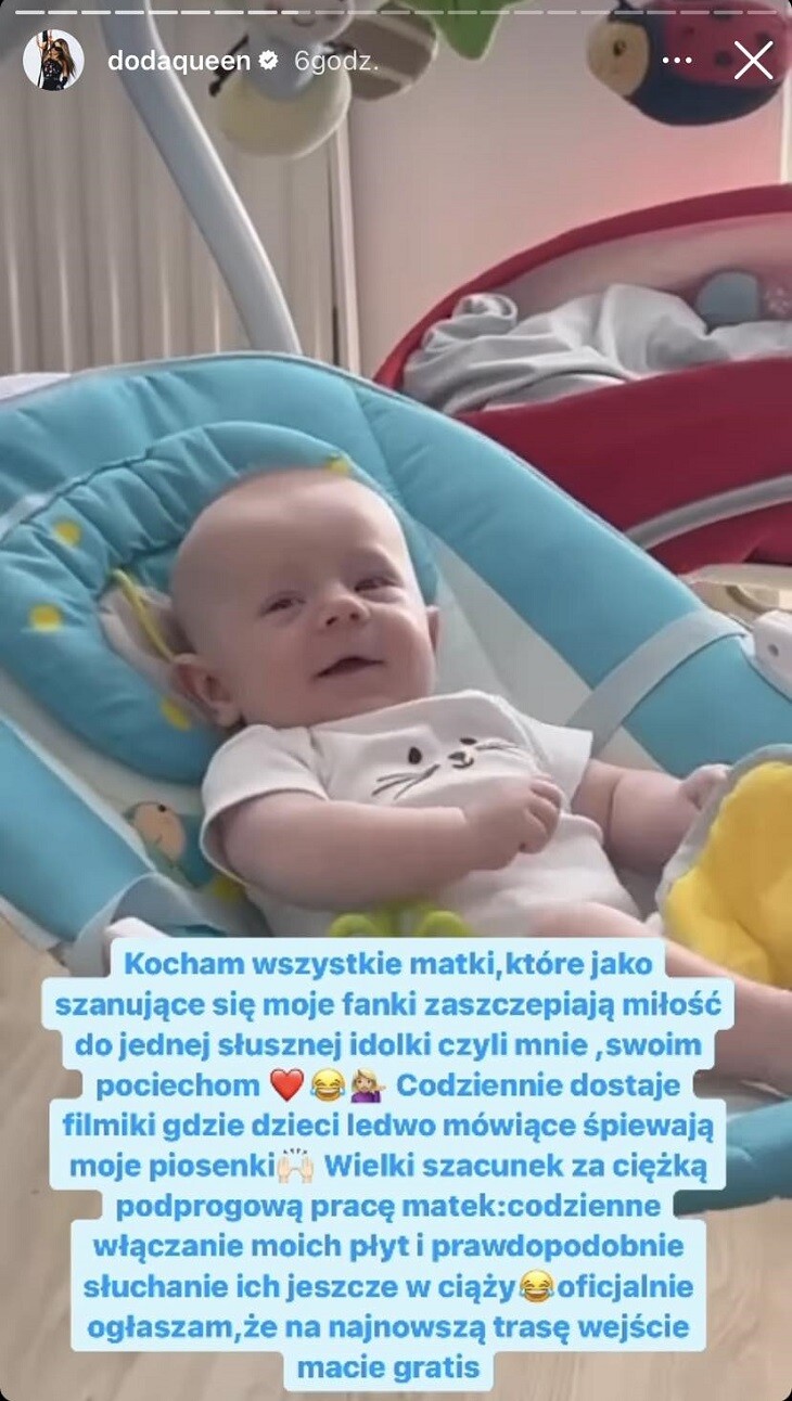 Doda opublikowała także wiadomości, które otrzymywała od swoich fanów. Matki opowiedziały o swoich zabawnych historiach związanych z dziećmi i muzyką Dody. Jedna z kobiet przyznała, że już w czasie zaawansowanej ciąży słuchała piosenek artystki i... przeczytajcie sami!