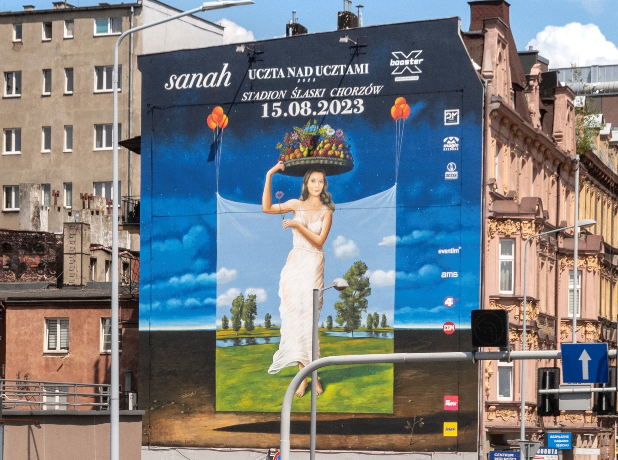 Tętniący kolorami mural wizualnie uzupełni koncert sanah w Chorzowie w ramach trasy Uczta nad Ucztami. Fantazyjne dzieło projektu Rafała Olbińskiego jest „kropką nad i” w uhonorowaniu święcącej sukcesy sanah. Każdy, to chce zobaczyć projekt na własne oczy, musi się spieszyć. Malowidło będzie zdobiło jedną z kamienic przy ul. Słowackiego w Katowicach tylko do 31 lipca.
