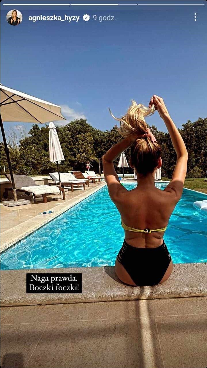 Żona Grzegorza Hyżego korzysta z uroków wakacji. Mimo że nie zwykła wrzucać do sieci obszernych relacji z rodzinnych wyjazdów, to teraz postanowiła pokazać swoim instagramowym obserwatorom jedną wykonaną podczas takiego wypadu fotografię. 38-latka zapozowała w bikini na brzegu basenu. Publikując kadr na InstaStories, podpisała go: