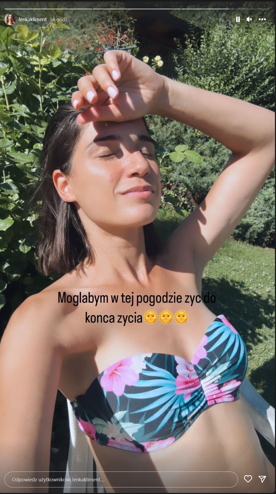 Tancerka, ku zaskoczeniu wielu osób, bardzo szybko wróciła do pracy i formy, o czym świadczą jej relacje z konkursów czy warsztatów tanecznych. Ukochana Jana Klimenta chętnie dzieli się materiałami ze wspólnych wyjazdów, na których towarzyszy jej synek. Trzeba przyznać, że regularne treningi dają niesamowite efekty, czego dowodem jest najnowsze zdjęcie Lenki opublikowane na InstaStories, na którym widzimy ją relaksującą się w promieniach letniego słońca. Przed obiektywem zapozowała w bikini, odsłaniając smukły brzuch.