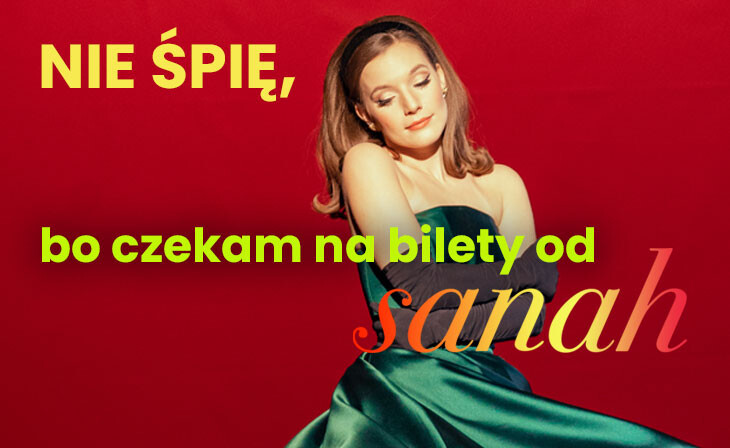 sanah to dziś jedna z najpopularniejszych wokalistek i pierwsza polska artystka, która wyprzedała w ramach stadionowej trasy koncertowej dwa stadiony: PGE Narodowy oraz Polsat Plus Arena Gdańsk. Po chwili wakacyjnego oddechu 25-latka przygotowuje się do kolejnych tygodni wypełnionych muzyką. Przed nią trasa koncertowa: prawdziwa "Uczta nad ucztami"! A my mamy dla Was bilety na te wyjątkowe, muzyczne spotkania z artystką! Będziecie mogli je zdobyć w czasie akcji "Nie śpię, bo poluję na bilety na sanah".