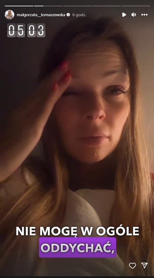 W nocy pojawiło się jednak niepokojące nagranie. Małgorzata Tomaszewska przekazała fanom, że choroba nie daje za wygraną. Infekcja coraz bardziej daje jej w kość. Ma problemy nie tylko z gardłem, ale również z zatokami, przez co nie może oddychać. Poprosiła też obserwatorów o domowe porady na uporanie się z jej dolegliwością.