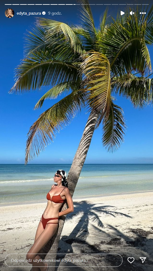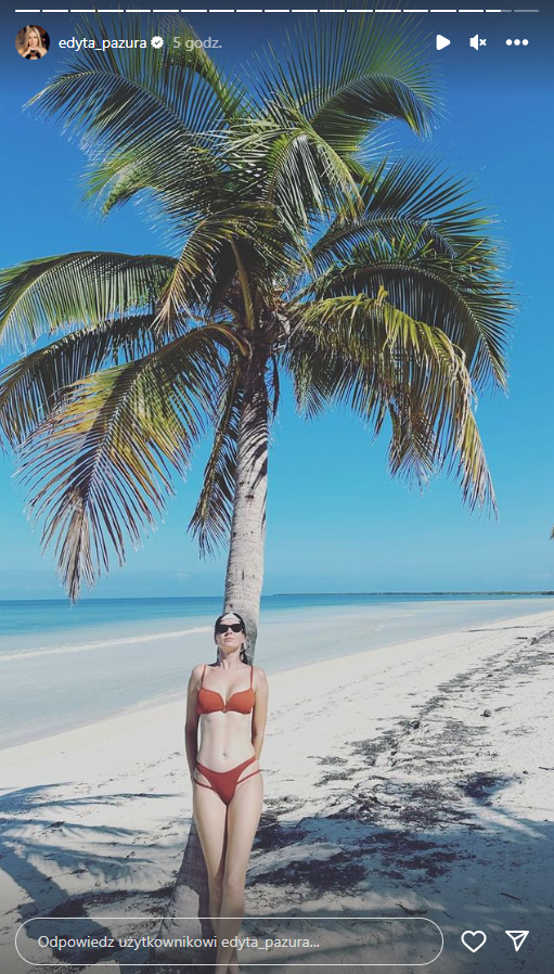 Chwilę temu Pazura podzieliła się kolejnymi zdjęciami z wypoczynku. Na InstaStories pokazała, jak w bikini wypoczywa pod palmami.