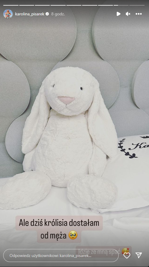 Teraz Pisarek znów dostała przepiękny prezent od Rogera. Tym razem była to maskotka białego królika w wersji maxi. Podarunek spodobał się tak mocno, że modelka poszła z nim spać, o czym poinformowała na Instagramie.