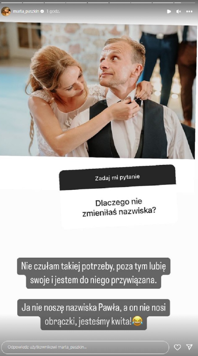Marta Paszkin po raz kolejny została zapytana o to, dlaczego nie przyjęła nazwiska małżonka.