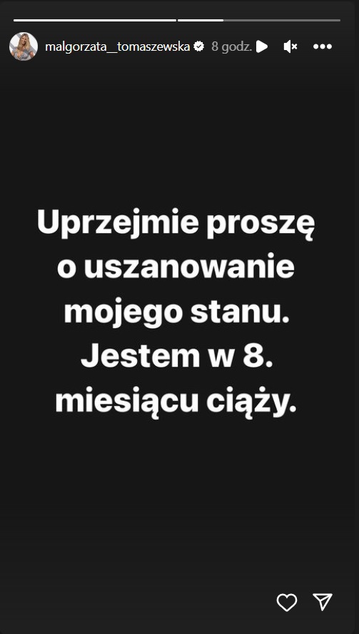 Na ten moment nie ma oficjalnego potwierdzenia tych informacji. Małgorzata Tomaszewska opublikowała na Stories krótką wypowiedź, która może mieć związek z tymi doniesieniami i ewentualnymi prośbami o odniesienie się do nich.