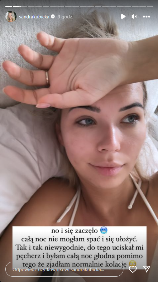 Na Instagramie opublikowała relację, w której opowiedziała o ciężkiej nocy – nie mogła się ułożyć, odczuwała głód i mocny ucisk na pęcherzu. Przy tylu utrudnieniach niełatwo było zapaść w sen.