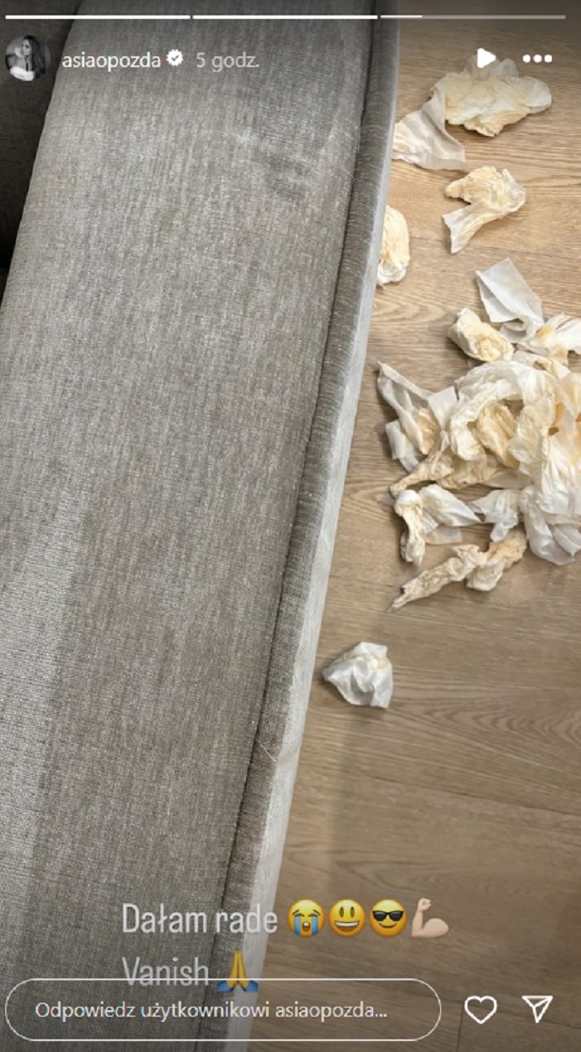 Joanna Opozda najpierw pokazała na Instagramie porysowaną sofę. Następnie udokumentowała „sprawcę”, którym okazał się właśnie Vincent. Maluch był mocno zaangażowany w zabawę kredkami – oprócz kanapy „pokolorował” także siebie! Finał tej historii okazał się szczęśliwy. Na kolejnym kafelku aktorka zdradziła, że udało się jej uporać z uszkodzeniami. A wy, jakie macie sprawdzone metody na podobne zabrudzenia?